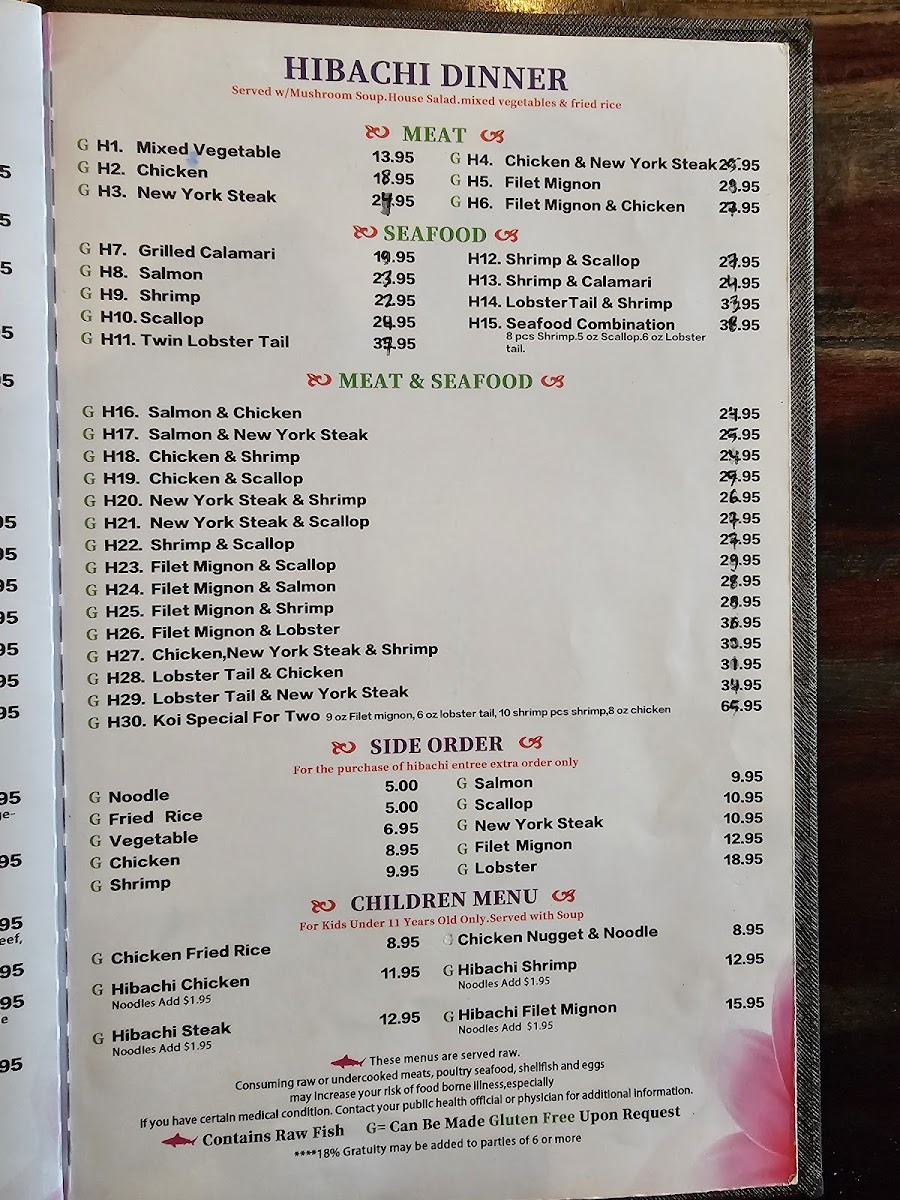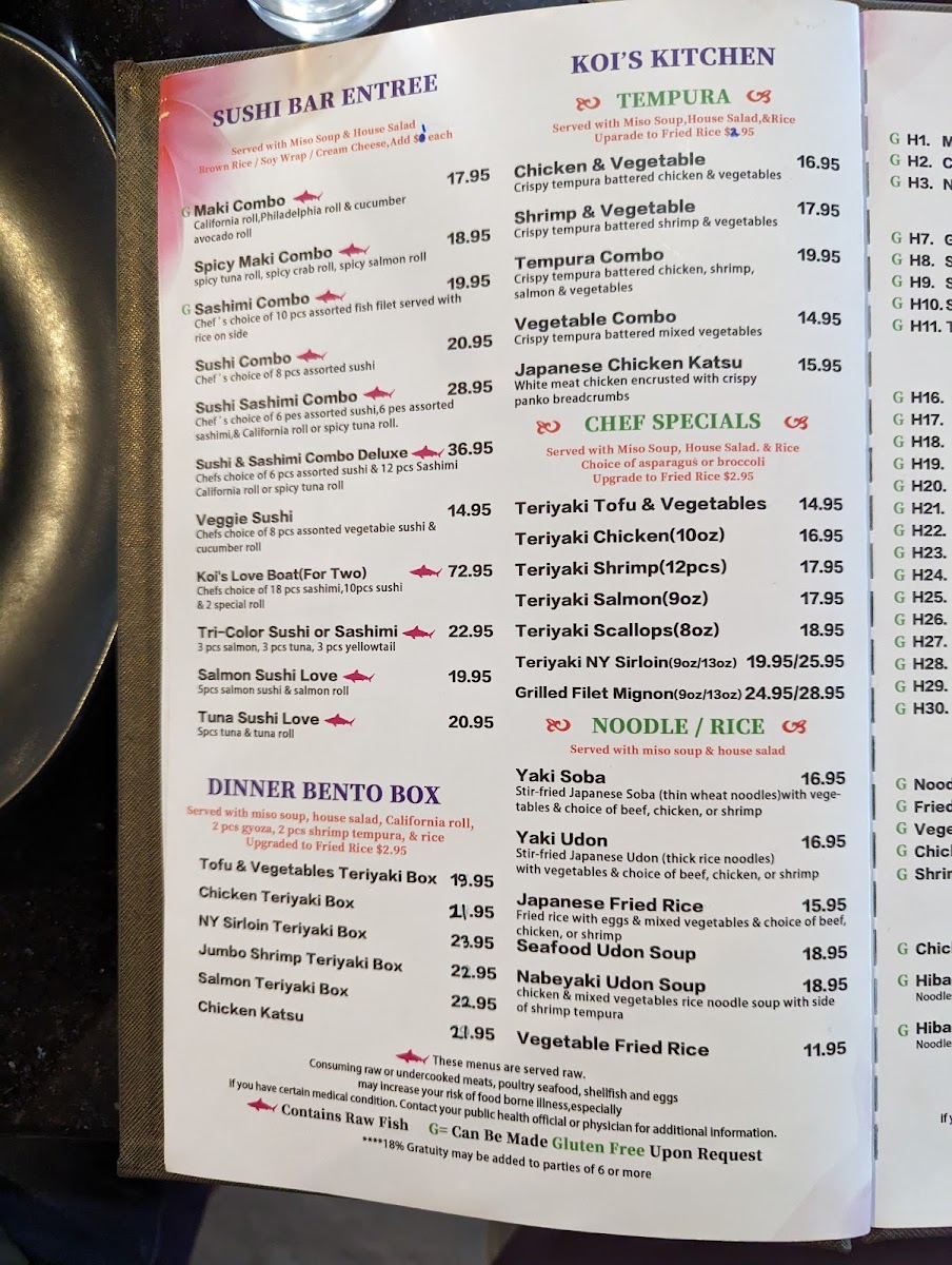 The menu at Koi Japanese Steakhouse & Sushi offers a balanced blend of classic Japanese dishes and lively hibachi-style meals, creating an inviting setting for both casual lunches and special dinners. Whether you’re settling in for a relaxing sushi platter or enjoying the engaging experience of teppanyaki cooking, the menu accommodates a variety of dining moods and occasions.